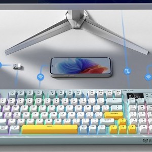 Az ONIKUMA G80 egy multifunkciós játékbillentyűzet, amely a legmodernebb technológiát színes, szemet gyönyörködtető dizájnnal ötvözi. A billentyűzet 94 billentyűvel ellátott elrendezést és három csatlakozási módot kínál - Bluetooth 5.0, 2,4 GHz-es sáv és vezetékes (USB-C-n keresztül). Hosszú üzemidő, funkcionális multimédiás tárcsa és beépített OLED (Organic Light Emitting Diode, nagy kontrasztú, alacsony energiafogyasztású LED-kijelző) képernyő is jellemzi. Mindezek miatt a G80 nemcsak játékra, hanem munkára és mindennapi használatra is tökéletes!