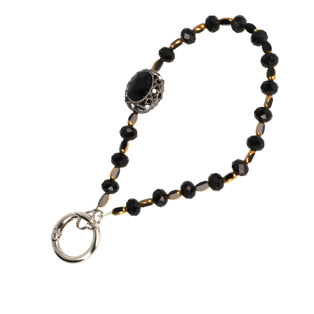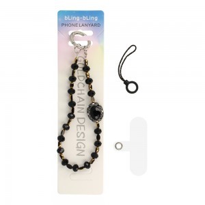 - Minimalista Stílus – Mély fekete gyöngyök és egy dekoratív medál illik bármilyen telefonhoz és öltözékhez.