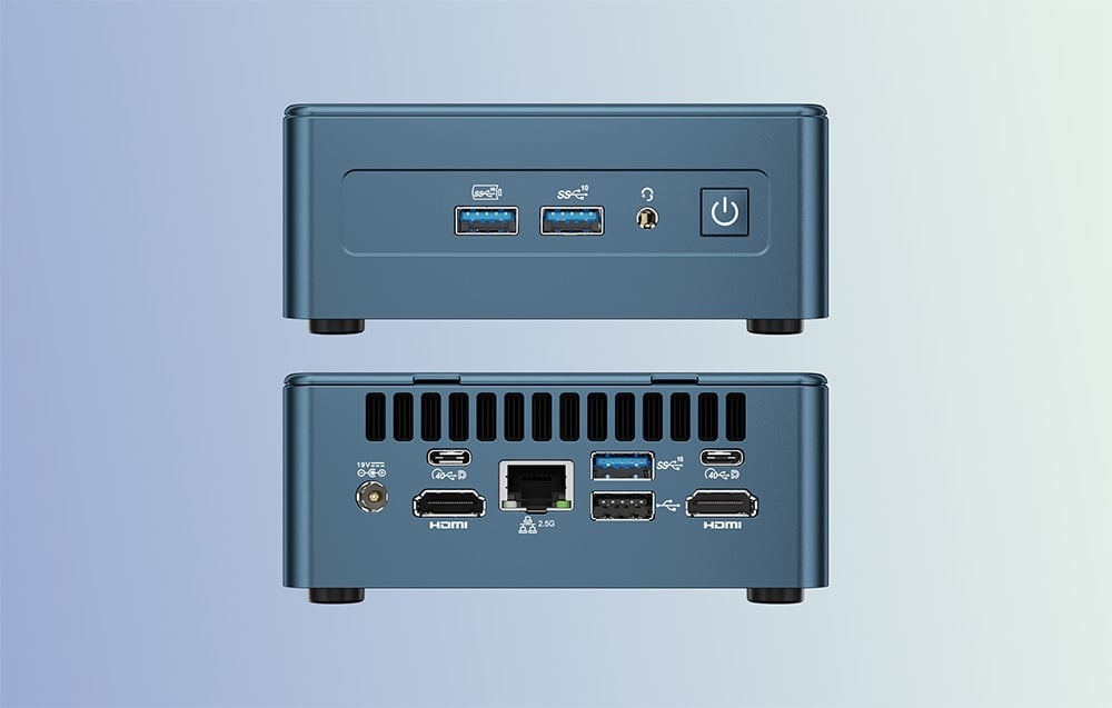 Az IT13 a portok széles választékát kínálja: 3x USB-A 3.2 Gen 2, 1x USB-A 2.0, 2x USB-C 4, 1x SD kártyaolvasó, 1x 3,5 mm-es fejhallgató-csatlakozó, 1x 2,5 GbE LAN port, 2x HDMI 2.0 és 1x DC csatlakozó. Így szabadon csatlakoztathatsz monitorokat, adathordozókat, perifériákat és kiegészítőket további adapterek nélkül.
