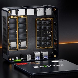 A ház alatt egy fejlett hűtőrendszer található, amely két ventilátorból, egy réz hűtőbordából és több légbeömlőből áll, így biztosítva a hatékony hőelvezetést és a csendes működést még nagy terhelés mellett is. A levehető fedél megkönnyíti az alkatrészek elérését, így könnyedén bővítheti a RAM-ot (akár 64 GB DDR5) vagy telepíthet további NVMe SSD-t (akár 4 TB-os támogatással).