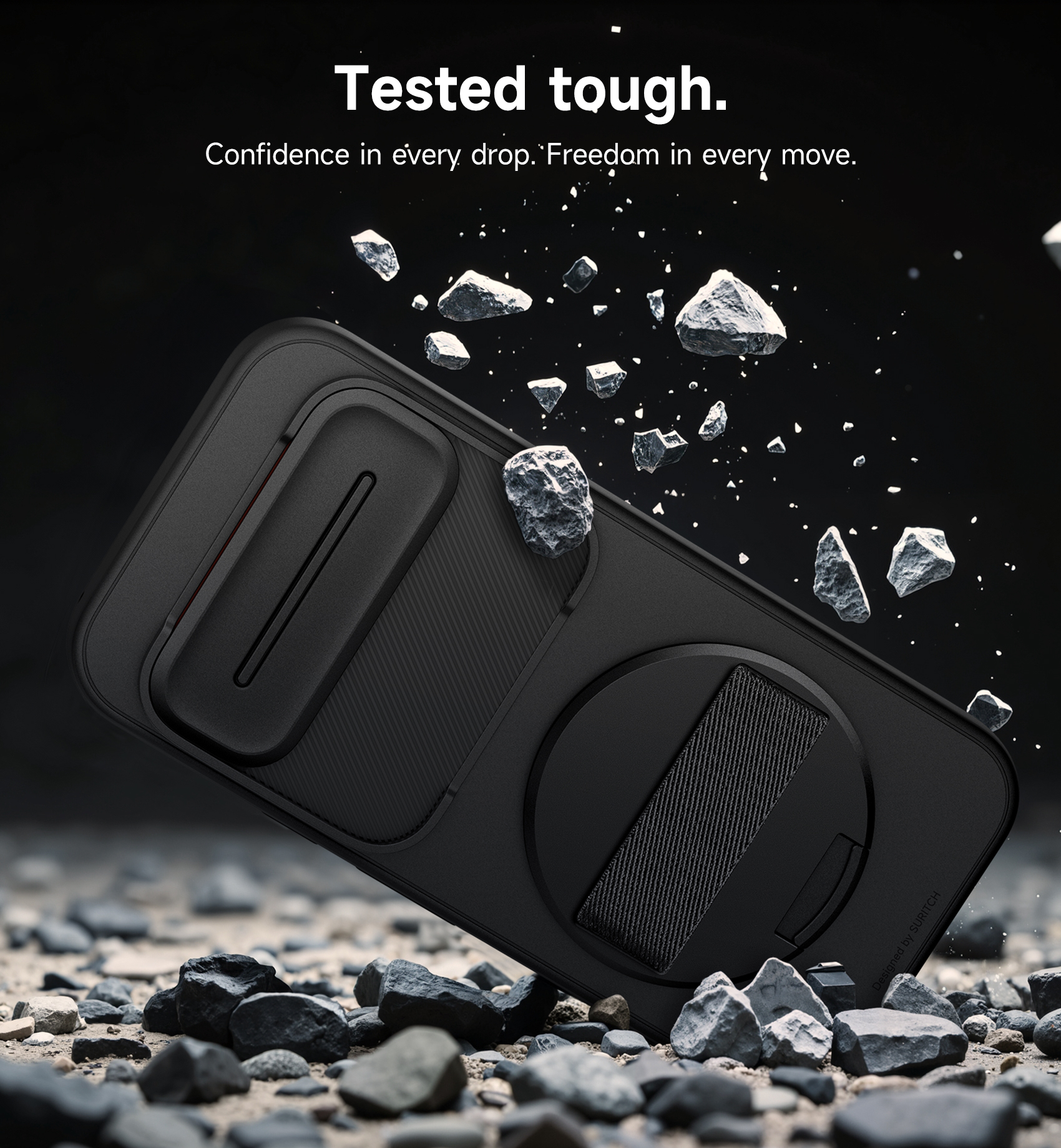 A SURITCH tokot a tartósság jegyében terveztük. Megerősített kialakításának köszönhetően kiváló leejtés elleni védelmet nyújt, így telefonja biztonságban marad a mindennapok kihívásaival szemben. A „tesztelt keménység” garantálja, hogy készüléke ellenáll a váratlan ütéseknek és eséseknek, Ön pedig magabiztos lehet minden mozdulatban.