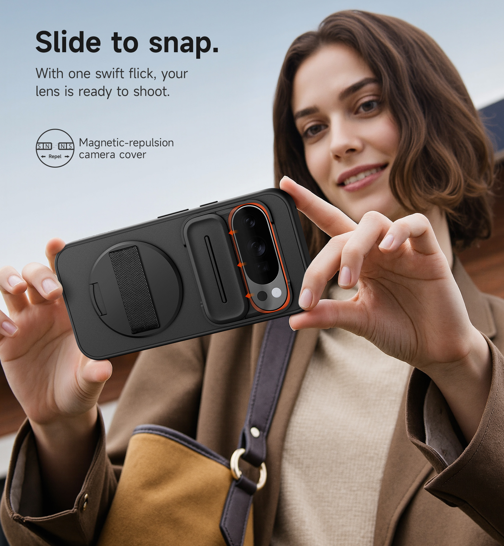 Védje meg Google Pixel 10 Pro XL készüléke kiemelkedő kameráját az egyedi, mágneses elven működő csúszó kamerafedéllel. Egyetlen gyors mozdulattal előkészítheti lencséjét a tökéletes felvételhez, majd visszacsúsztatva megóvhatja a karcolásoktól, portól és a magánszféra illetéktelen bepillantásaitól, amikor épp nem használja. Készítsen, pillanatok alatt ossza meg!