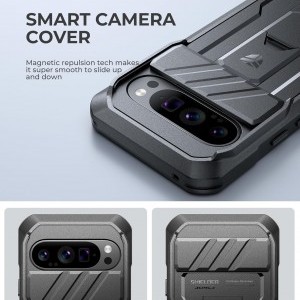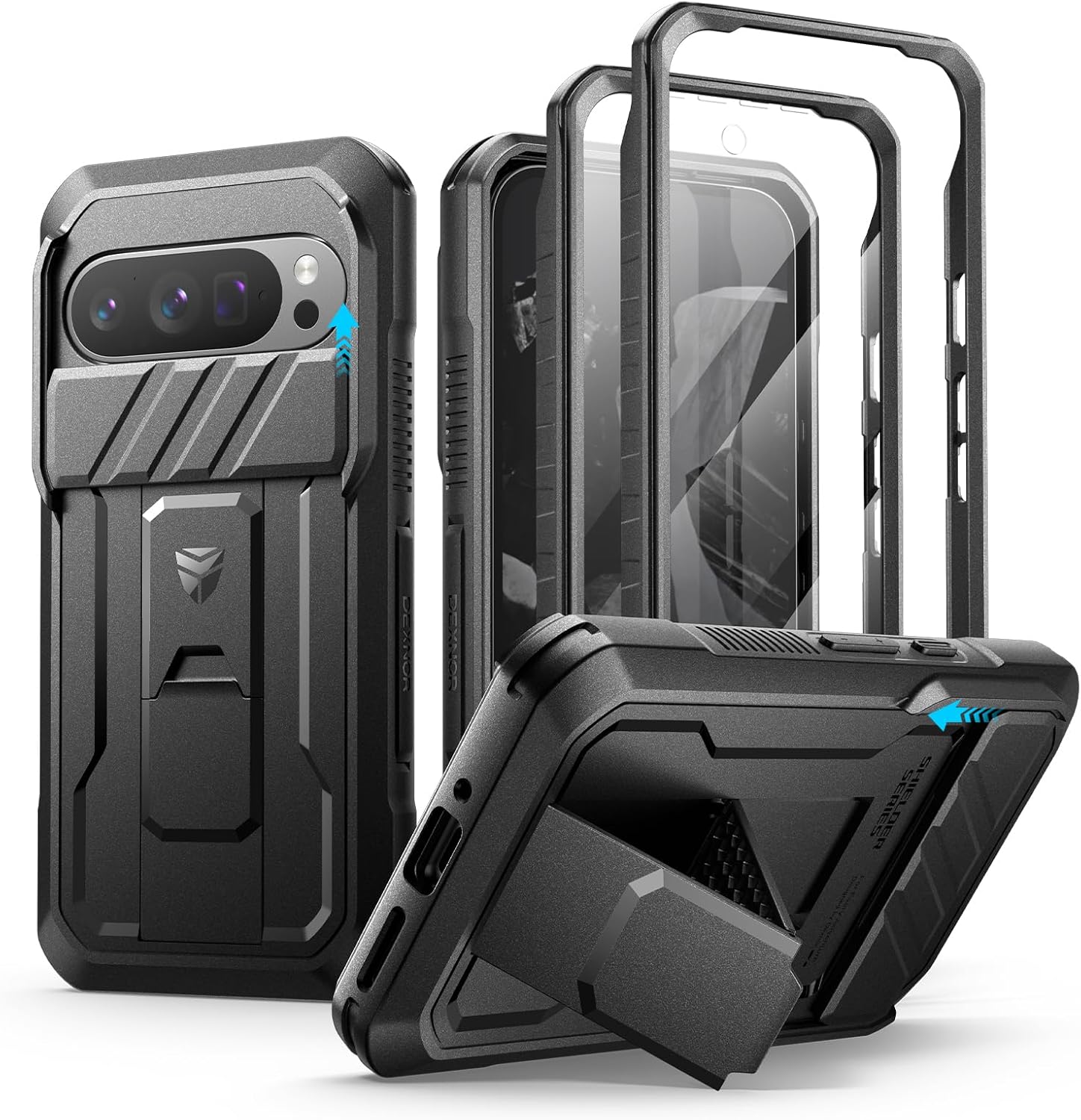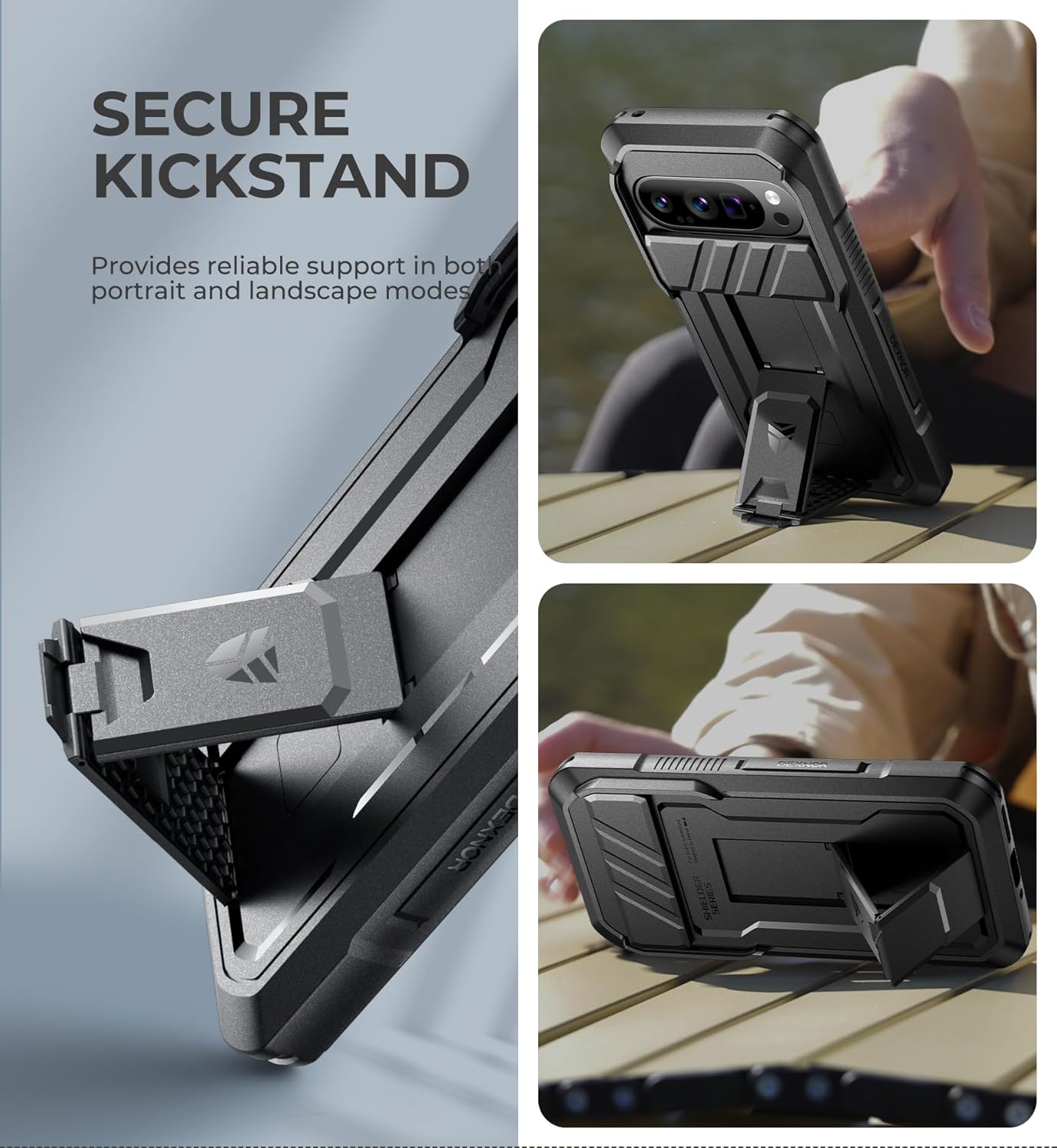 Google Pixel 9 Pro Dexnor 360 ütésálló tok kihajtható állvánnyal és kameravédővel fekete