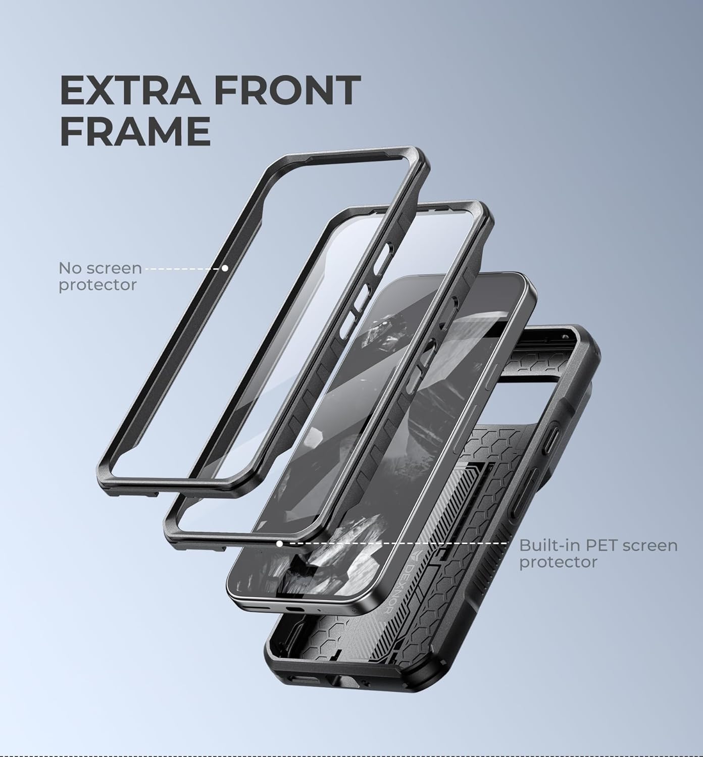 A tok tökéletesen illeszkedik a Google Pixel 9 Pro készülékhez, pontos kivágásokat biztosítva az összes port, gomb és funkció számára. Az ergonomikus kialakítás kényelmes fogást biztosít, minimalizálva a véletlen kicsúszás esélyét. A matt fekete felület nemcsak elegáns, hanem ujjlenyomat-álló is, így telefonja mindig tiszta és professzionális megjelenésű marad, miközben maximális védelmet nyújt.