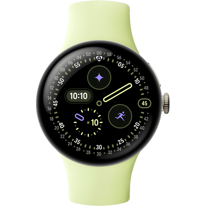 - Elegáns megjelenés: A Google Pixel Watch 4 letisztult, kör alakú formavilága és az arany színű fém tok prémium érzetet kölcsönöz. A vibráló citromsárga, puha szilikon szíj kényelmes viseletet biztosít egész nap, és egyedi, modern stílust visz öltözékébe.