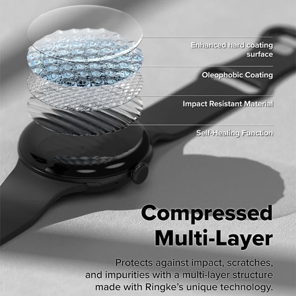 Ez a védőfólia a Ringke egyedülálló technológiájával készült, többrétegű szerkezettel rendelkezik, amely átfogó védelmet nyújt az ütések, karcolások és a szennyeződések ellen. A rétegek a következők: