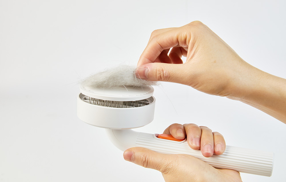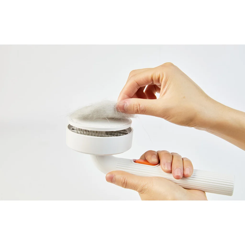 A kefe tisztítása könnyebb, mint gondolnád. A nyélen található nagy gomb segítségével könnyedén megszabadulhatsz a felgyülemlett szőrtől. Többé nem kell fáradságosan tisztítanod a kefét - csak nyomd meg a gombot és kész!