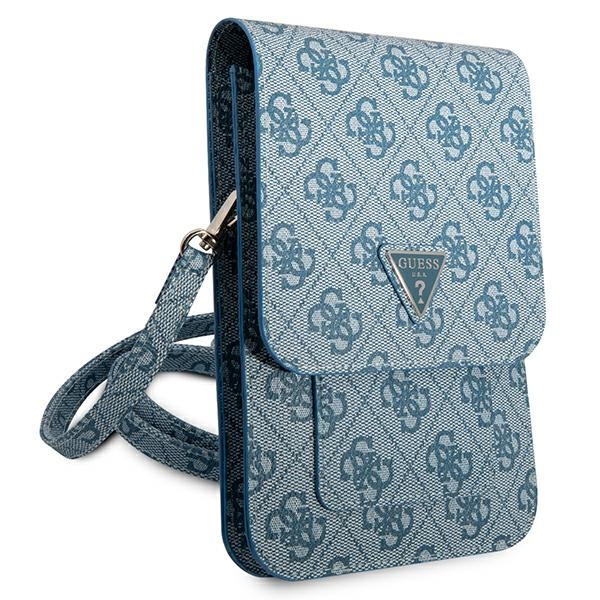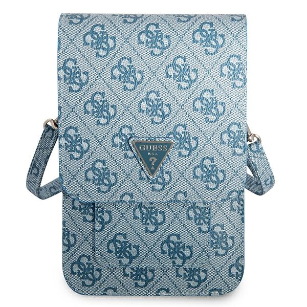 A Guess 4G Triangle kézitáska jellemzői közé tartozik a 4G logó, amely az egész bőr felületen nyomtatva látható. Pontos tervezésével és stílusos megjelenésével a Guess termékek előnyei közé tartozik, a táska a háromszög alakú Guess logóval van díszítve. Levehető vállpánttal, négy zsebbel kártyák/dokumentumok számára és két rekesszel rendelkezik telefon számára, amelyet mágneses zárral lehet zárni. A termék a Guess licenc alapján készült.