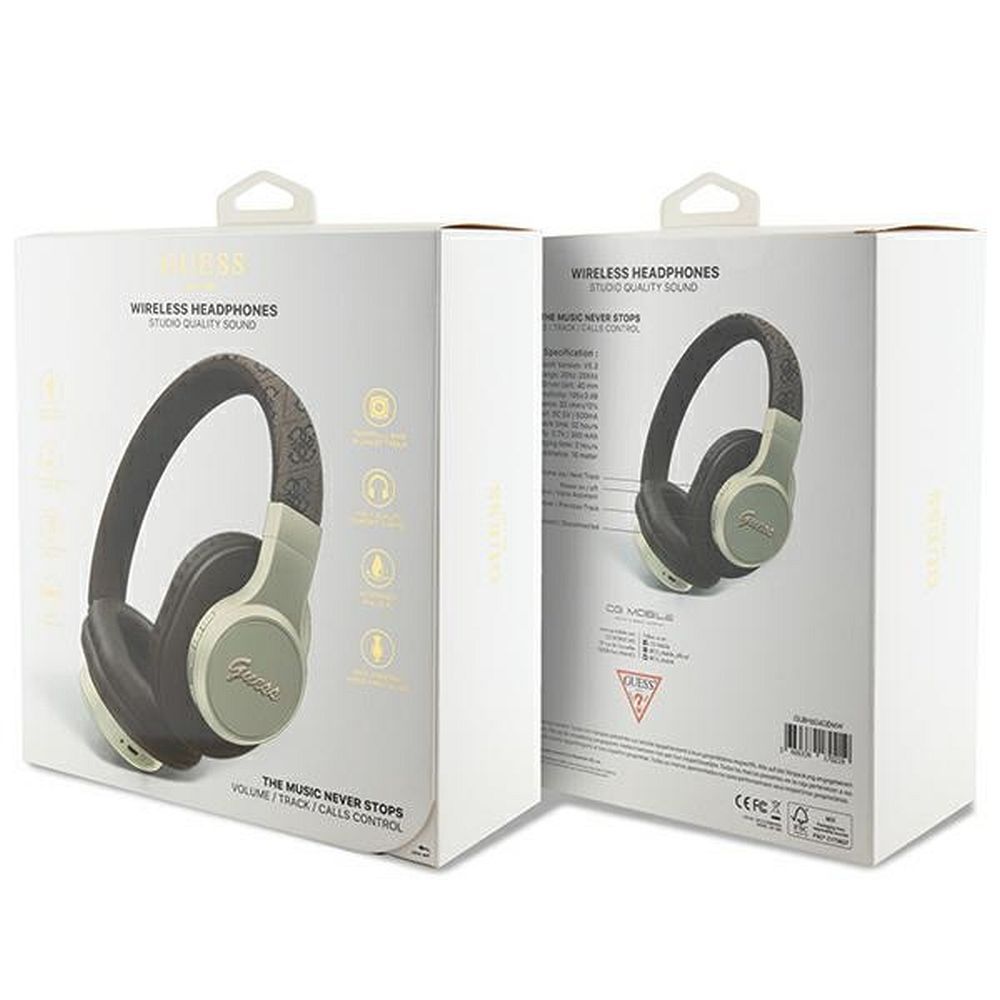 A fejhallgatókat a jól ismert Guess divatház számos projektjéből ismert klasszikus 4G motívummal díszítették. A kiváló minőségű ökológiai bőr textúráján található 4G minta ragyogást és szépséget kölcsönöz az egész szerkezetnek, felhívja a figyelmet a termékre, és rendkívül luxussá teszi azt. A fejhallgatók kidolgozása nagyon igényes, ami egyedi esztétikát kölcsönöz nekik. A fülkagylók külső része aranyszínű anyaggal van borítva, amely gyönyörű kontrasztot alkot a 4G mintával, és felületén egy nagy vintage Guess logó található. A Guess logó a termék legmagasabb minőségét és hitelességét igazolja.