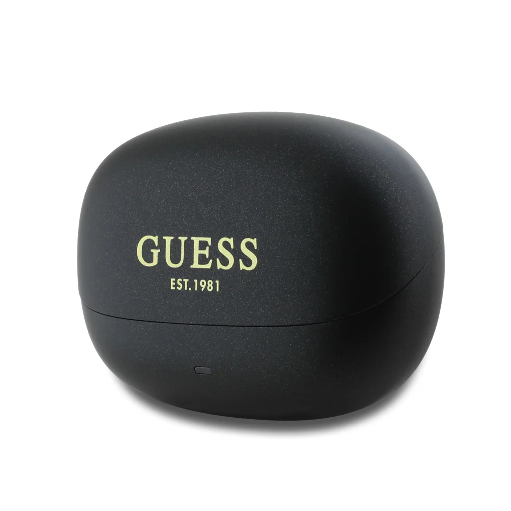 • Stílusos töltőtáska: Az elegáns töltőtáska Guess logóval nemcsak megvédi a fülhallgatókat, hanem teljesen feltöltve tartja őket. A táska kompakt, és könnyen elfér a zsebedben vagy a táskádban.