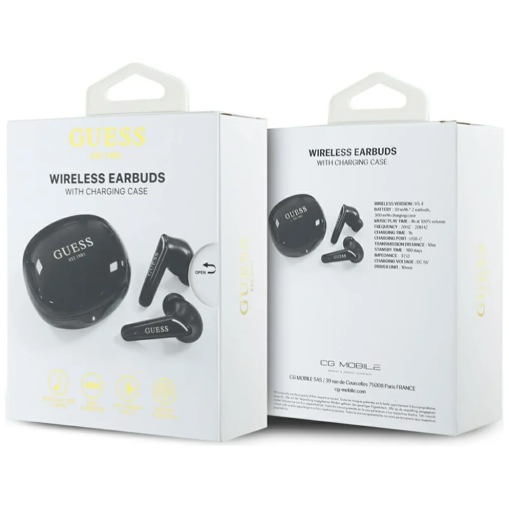 • Vezeték nélküli szabadság: Élvezd a mozgás szabadságát kábelek nélkül. A Guess fejhallgatók Bluetooth 5.4 technológiát használnak, amely biztosítja a stabil és gyors csatlakozást minden eszközödhöz, akár 10 méteres hatótávolsággal rendelkezik.