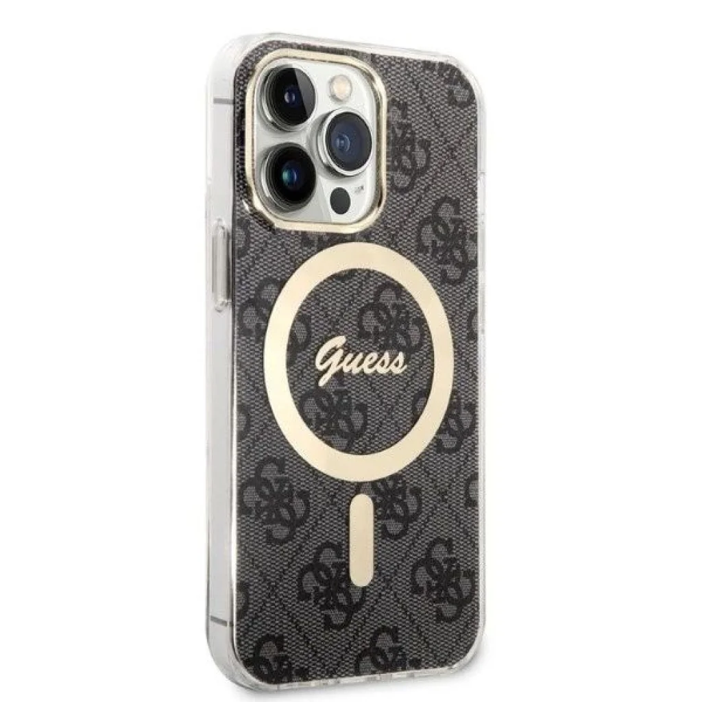 A 4G Print kollekció stílusos tokját egy exkluzív, világszerte ismert 4G minta jellemzi. A 4G elemek egy elválaszthatatlan, jellegzetes motívum, amely számos különböző kollekcióban jelenik meg egy elismert divatháztól, és garantálja a legmagasabb minőségű termékeket. A Guess koncepciójának jellegzetes vonása a legújabb divattrendek és a klasszikus stílus közötti egyensúly megtartása, miközben megőrzi projektjeinek elegáns karakterét. Az arany kiegészítők használata - például a kamera körüli keret és a Guess divatház emblémája - elit dimenziót ad az egész toknak. A 4G Print kollekció tokjai kombinálják az exkluzív dizájnt a legmagasabb szintű kidolgozással. A termék tartós anyagokból készült - erős és kemény polikarbonát (hátlap) és rugalmas TPU szilikon (oldalak) kombinációjával -, amely biztonságosan körülveszi a készüléket, tökéletesen illeszkedve hozzá. A tok a szokatlan vizuális hatások mellett garantálja a telefon biztonságát a nemkívánatos karcolásokkal és sérülésekkel szemben. Mindezen jellemzők kombinációja kiváló választást nyújt mindenki számára, aki nemcsak funkcionalitást és magas minőséget vár el iPhone tokjától, hanem elsősorban azt szeretné, hogy telefonja exkluzív kiegészítője legyen mindennapi szettjeinek. Az egyszerű használat érdekében a tok mágneses gyűrűvel van ellátva, amely kompatibilis a MagSafe technológiával, lehetővé téve a gyors, vezeték nélküli töltést.