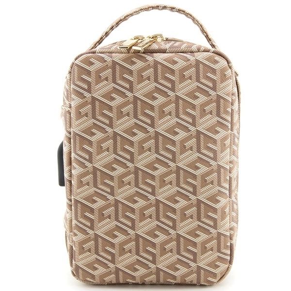 A Guess GCube Stripe kollekció egy rendkívül stílusos és ízléses kézitáska szervező gyűjtemény, amelyet azok számára terveztek, akiknek szükségük van egy kiegészítőre, amely elegendő helyet biztosít mindennapi szükséges tárgyaik tárolásához, miközben divatos megjelenésre vágynak. A Guess divatház által aláírt G Cube kollekció a legmagasabb minőségi kivitelezés és egyedi dizájn garanciája. A kollekciót a legmagasabb minőségű G Cube nyomtatás díszíti, ami tökéletes választás azok számára, akik az exkluzív megjelenést és a designer kiegészítőket értékelik. A Guess divatházra jellemző G Cube motívum egy nagyon keresett minta, amely közvetlenül a márka legújabb kollekcióiból származik. Az alsó szíjon elhelyezett nagy Guess logó, amely ellentétben áll a tok többi részével, kiemeli a kollekció elitizmusát, gyönyörű díszítés és egyben megerősíti a kollekció kiváló minőségét és eredetiségét. A táska belseje rendkívül funkcionális - számos rekesz lehetővé teszi a szükséges apró kiegészítők kényelmes tárolását. A táska külső porttal rendelkezik USB csatlakozóval, a táska belsejében pedig egy USB csatlakozós kábel található. A táska egy nagyon kényelmes, praktikus fogantyúval van felszerelve, amely lehetővé teszi, hogy csuklóra akassza, vagy kézben tartsa. A terméket a Guess licence alapján gyártották.