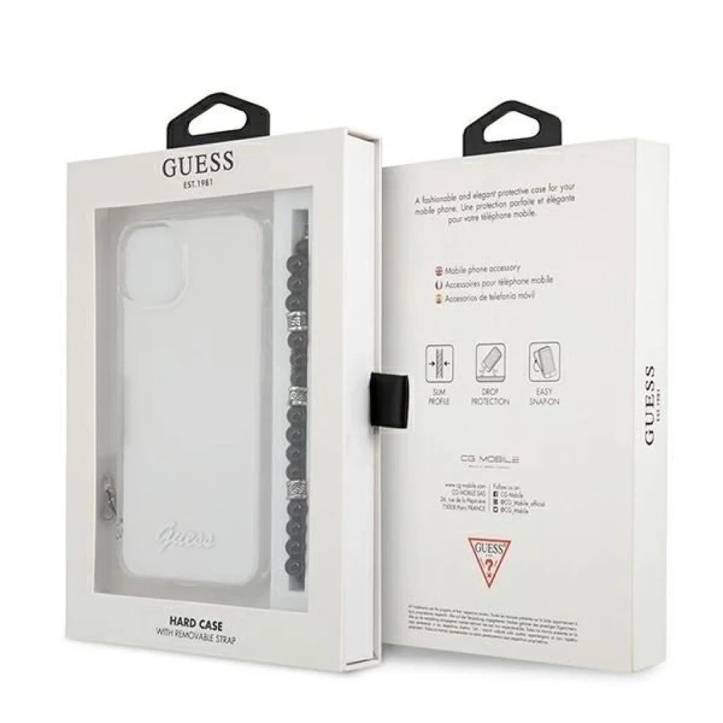 Guess tok klasszikus karakterrel - átlátszó klasszikus tok, amelyet a Guess Vintage stílusú logóval fejeztek be. A tok egyedülálló alternatívaként készült a hagyományos mobiltelefontokokhoz, valamint egyedi és eredeti megjelenést kölcsönözve. Rendkívül magas minőségű, elismert vállalat terméke, amely erős és tartós polikarbonátból készült. Az átlátszó tok, amelyen a Guess logója található, hangsúlyozza a készülék presztízsét, és az egészet egy bájos gyöngy függő egészíti ki, amely extra sikket kölcsönöz.