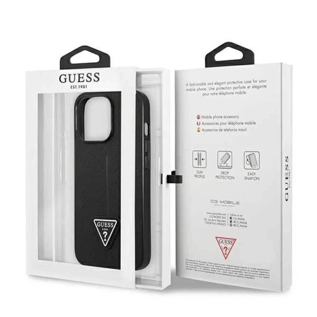 Guess SaffianoTriangle Logo Az egyedülálló ízlés szabványát a Saffiano Triangle kollekció határozza meg a Guess jóvoltából. Minőség, amely minden részletében érezhető. A nagyon aprólékosan tervezett tok, amely Saffiano öko bőrből készült, kiemelkedik kompromisszummentes minőségével és integritásával a saját imázsával. A kiváló minőséget megerősíti a háromszög alakú Guess logó, amely elválaszthatatlan motívumként jelenik meg számos módon a megbecsült márka különböző kollekcióiban. A divatos tokok kifejező megjelenése kiemeli mindennapi, egyedi stílusát. A Saffiano kollekciót tartósság, esztétika és a minimalizmus és funkcionalitás tökéletes egyensúlya jellemzi. Egy exkluzív tok, amivel stílusos és divatos megjelenést érhet el. A termék a Guess licenc alapján készült. Gyűjtemény: SaffianoTriangle Logo Típus: Keménytok Anyag: TPU / Öko bőr Szín: Fekete Kompatibilitás: iPhone 14 Pro 6.1"