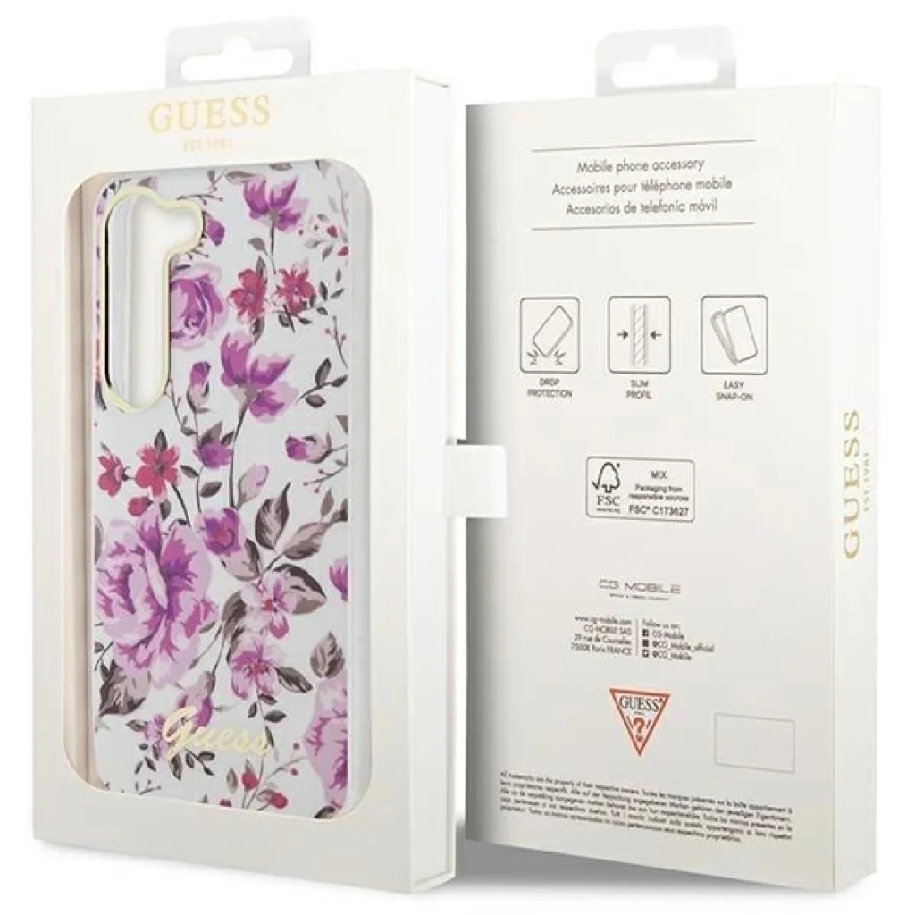 Guess GUHCS23SHCFWST S23 S911 fehér/fehér kemény tok Flower Collection tok