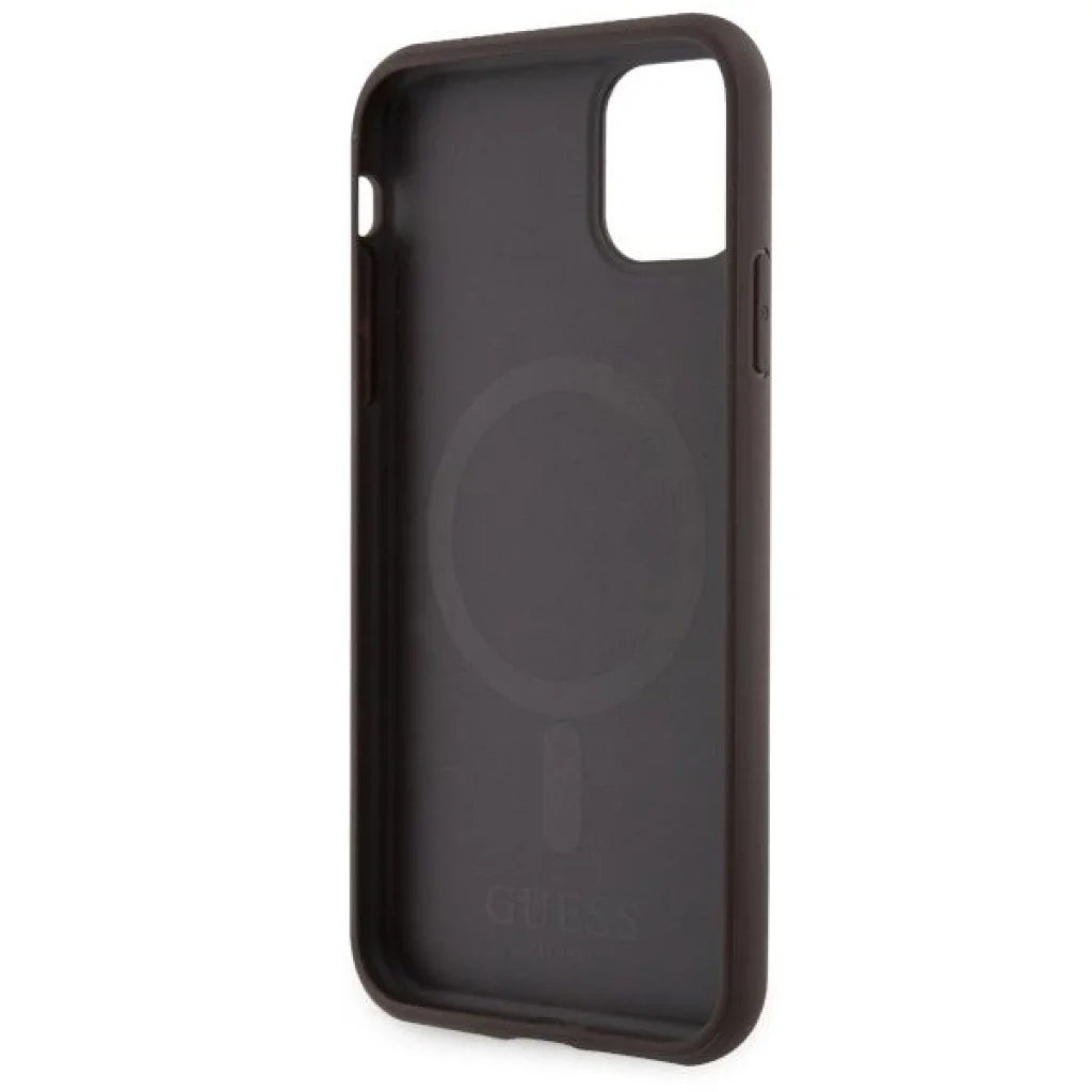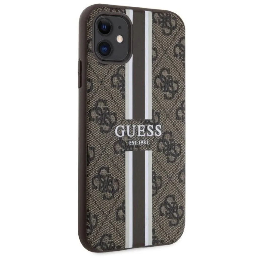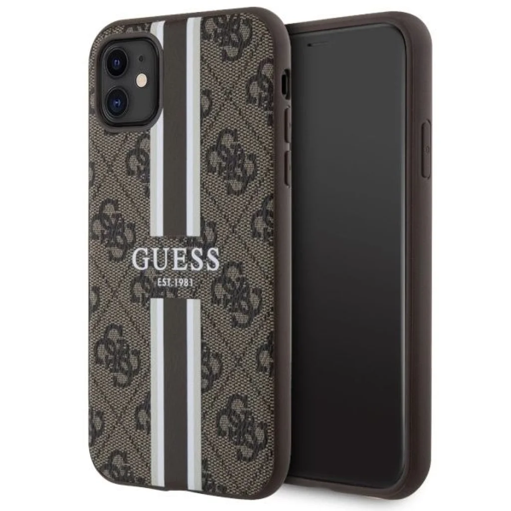 Guess 4G Printed Stripes MagSafe. Az exkluzív védőtokok kollekciója, amelyet a jól ismert Guess divatház jegyez. A 4G Printed Stripes kollekció új mércét állít a páratlan stílus terén, látványos dizájnjával, esztétikájával és divatos megjelenésével lenyűgöz. A kiváló minőséget a jellegzetes 4G logóval ellátott ökológiai bőr és a tok színével harmonizáló pánton elhelyezett Guess logó igazolja. A 4G elemek elválaszthatatlan motívumként számtalan formában vannak jelen a márka különböző kollekcióiban. Kiváló választás azoknak, akik funkcionális és exkluzív tokot keresnek. A tok védi a készüléket, biztosítva az összes port és gomb elérését. A tok szerkezete tartós poliuretánból készült, ellenáll a kopásnak és a külső behatásoknak. Az öko-bőr tartós, ellenáll a sérüléseknek és karcolásoknak, miközben hosszú ideig megőrzi esztétikus megjelenését. A tok tökéletesen illeszkedik, rendelkezik minden gombfedéllel és portkivágással, nem akadályozza a készülék mindennapi használatát. A tokok mágnesgyűrűvel vannak felszerelve, amely kompatibilis a MagSafe vezeték nélküli töltővel, így gyors és egyszerű töltést biztosít. A tokokba épített mágnesek tökéletesen illeszkednek a felhasználó telefonjához, és biztosítják, hogy az iPhone szilárdan rögzüljön a MagSafe töltőhöz. A mágnesgyűrű tökéletesen illik a tok színéhez. A termék Guess licensz alatt készült. Technikai adatok: Kollekció 4G Printed Stripes MagSafe, Típus Kemény tok, Szín Barna, Anyag TPU, PC, ökológiai bőr, Kompatibilitás iPhone 11 / XR 6.1". MEGJEGYZÉS: Az iPhone Xr esetében a kamera kivágása nagyobb lesz, nincs helye panasznak.