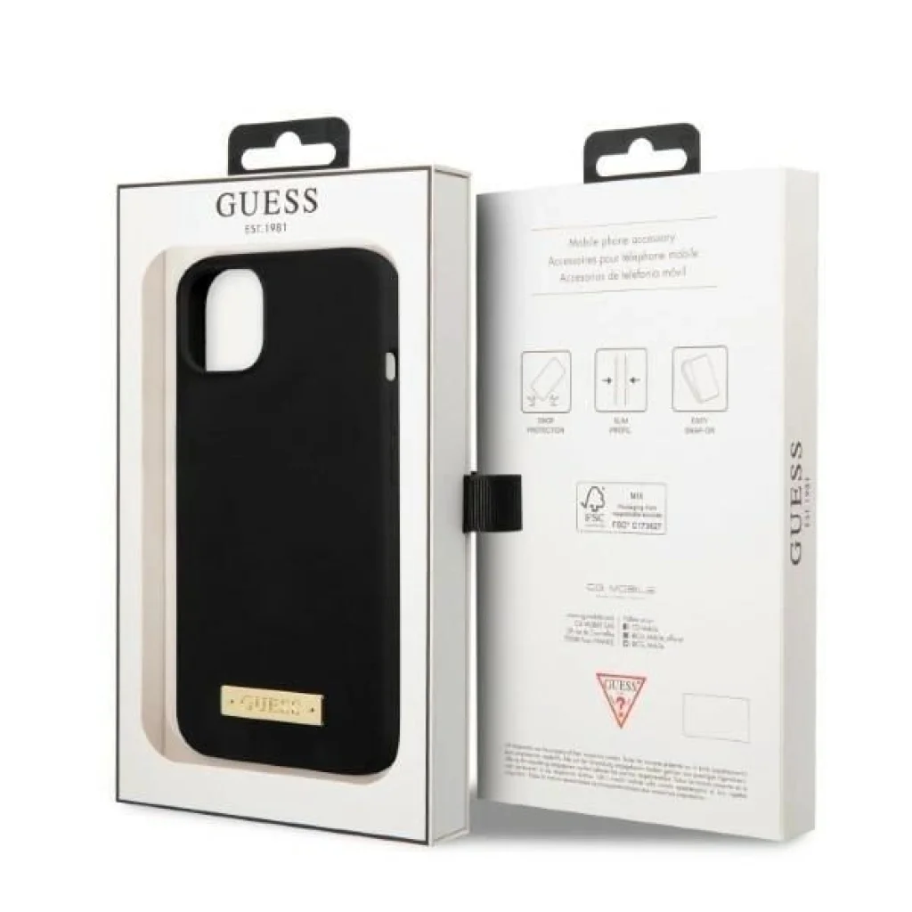 Divatos és stílusos Guess tok a lenyűgöző, minimalista Silicone Logo Plate MagSafe kollekcióból. Kiváló minőség, ami minden részletében érezhető. Nagyon gondosan tervezett tok, rugalmas szilikonból készült, belseje mikroszálas béléssel ellátva. A mikroszálas bélés hatékonyan védi az iPhone-t, a tökéletesen sima és puha szilikon pedig nagyszerű fogást biztosít. A Silicone Logo Plate MagSafe kollekció tartósságról, esztétikáról és a minimalizmus és funkcionalitás közötti tökéletes egyensúlyról ismert. A kiváló minőséget egy Guess logóval ellátott arany fémlemez is megerősíti. Egy exkluzív tok, amire szükséged van, hogy stílusos és divatos legyél. A tok mágneses gyűrűt is tartalmaz, amely kompatibilis a MagSafe vezeték nélküli töltővel, így gyors és egyszerű töltést biztosít. A terméket Guess licenc alapján gyártották.