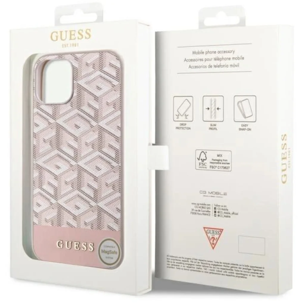A G Cube motívum, amely a Guess divatház jellegzetes mintája, nagyon kívánatos minta, amely közvetlenül a márka legújabb kollekcióiból származik. A nagy Guess márkaa logó az alsó szalagon, mely kontrasztot alkot a tok többi részével, hangsúlyozza a kollekció elitizmusát, gyönyörű dísze és egyben a tok kiváló minőségének és hitelességének megerősítése.