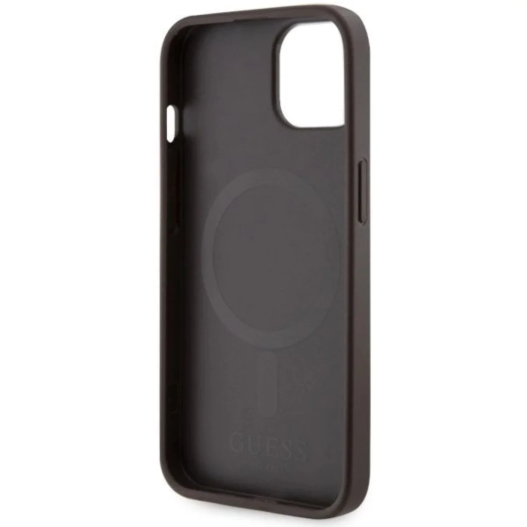 A tok védi a készüléket, miközben hozzáférést biztosít az összes porthoz és gombhoz. A tok szerkezete tartós poliuretánból készült, amely ellenálló a kopással és külső hatásokkal szemben. Az öko-bőr tartós, karcálló, és hosszú ideig megőrzi esztétikus megjelenését. A tok tökéletesen illeszkedik, minden gombra van fedél és a portok számára kivágások, ami nem akadályozza a készülék mindennapi használatát. A tokokat mágneses gyűrűvel szerelték fel, amely kompatibilis a MagSafe vezeték nélküli töltővel, gyors és egyszerű töltést biztosítva. A tokokba épített mágnesek tökéletesen illeszkednek a felhasználó telefonjához, és biztosítják, hogy az iPhone szorosan tapadjon a MagSafe töltőhöz. A mágneses gyűrű színe tökéletesen passzol a tok színéhez. A terméket a Guess licenc alatt gyártják.