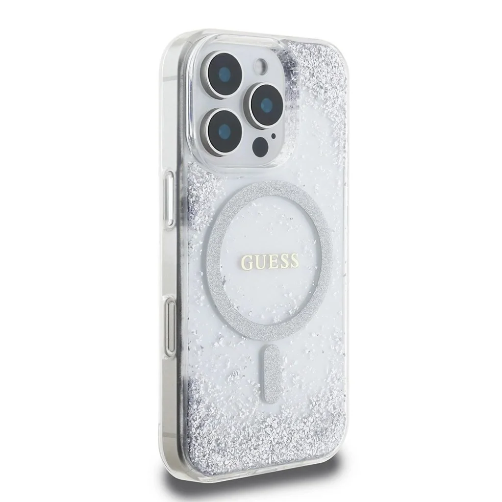 Egyedi megjelenés és kivételes minőség Az exkluzív védőtok a neves Guess márkától az elegancia és stílus legmagasabb szintű kombinációja. A tok középső részén a Guess logó és egy csillogó MagSafe gyűrű található, amelyek finoman hangsúlyozzák a tok presztízsét. Ráadásul csak finoman meg kell rázni a tokot, hogy a csillogó részecskék mozgásba lendüljenek, és egyedi ragyogást adjanak az egésznek. Ez a funkcionalitás és az elegáns dizájn tökéletes kombinációja, amely által a telefon nemcsak jól védett, hanem divatos kiegészítő is lesz.