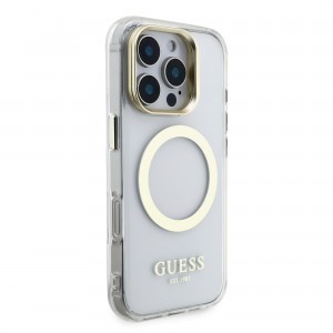 A Guess IML Arany Keretes Állványos Kamera Keret MagSafe hátlap tok remek kiegészítő minden stílus és praktikum kedvelő számára.