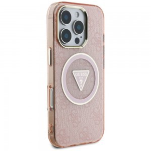 Termék leírás Guess - IML Fém Csillámos 4G Kör Háromszög MagSafe (GUHMP16LHG4PRTGP) - iPhone 16 Pro - Rózsaszín tok
