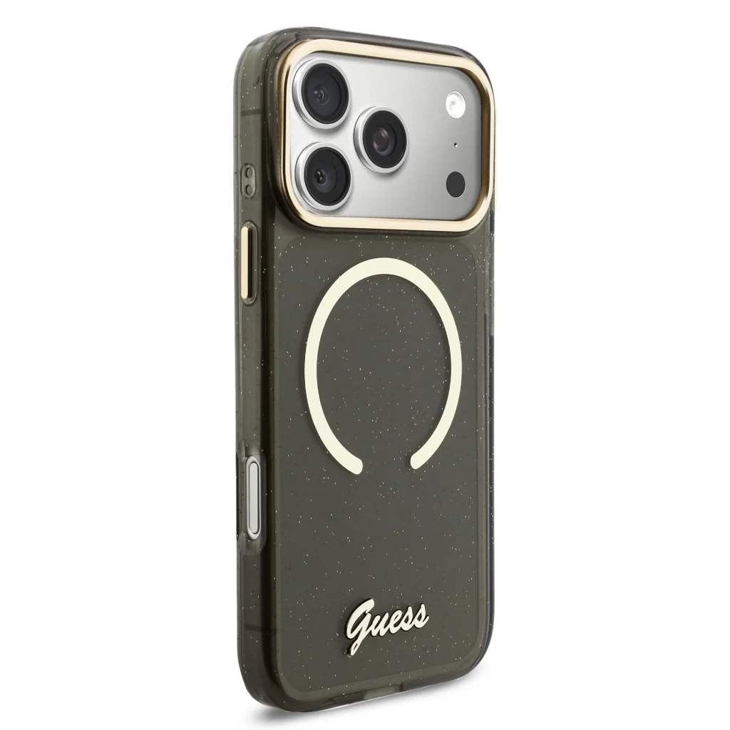 A Guess IML Glitter Script Strap MagSafe hátlap egy nagyszerű kiegészítő minden stílus- és praktikakedvelő számára.