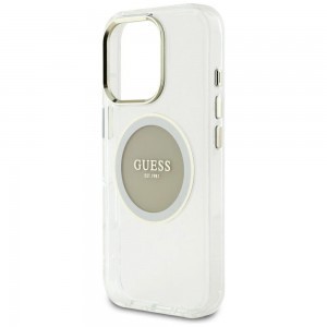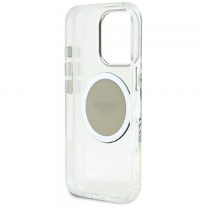Töltse telefonját vezeték nélkül! A tok egy mágnesgyűrűvel van felszerelve, amely kompatibilis a MagSafe vezeték nélküli töltővel, biztosítva a gyors és egyszerű töltést. A tokba épített mágnesek tökéletesen illeszkednek a felhasználó telefonjához, és biztosítják az eszköz erős tapadását a MagSafe töltőhöz. A tok a Guess márka engedélyével készült.
