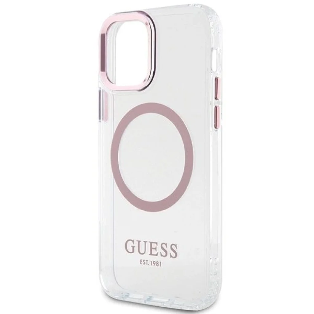 A Guess egyedülálló tok sorozata, amely stílusos és divatos megjelenést biztosít. Az Metal Outline Magsafe kollekció mindazok számára készült, akik különleges tokot keresnek iPhone-juk védelmére. Ennek a toknak a gyártása során IMD (In-Mould-Decoration) technológiát alkalmaztak. A grafika forró préseléssel kerül a felületre, majd finom TPU réteggel bevonják, ami ellenállóvá teszi a kopással szemben. A tok hátlapja átlátszó polikarbonátból készült, a szélei pedig rugalmas poliuretánból, amely megkönnyíti a felhelyezést.