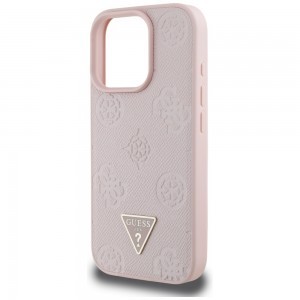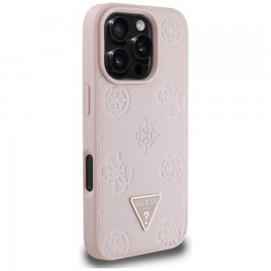 Termék leírás Guess - Peony Grained Hot Stamp Triangle MagSafe (GUHMP16LPGBTMP) - iPhone 16 Pro - Rózsaszín tok