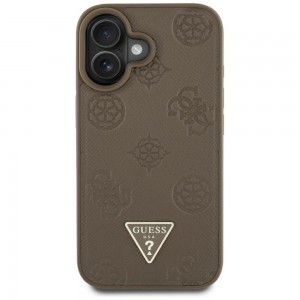Termék leírás Guess - Peony Grained Hot Stamp Triangle MagSafe (GUHMP16SPGBTMW) - iPhone 16 - Barna tok