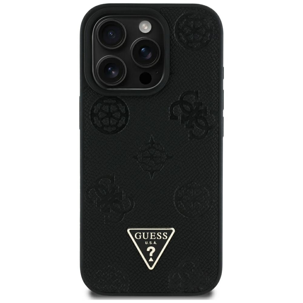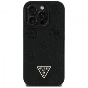 Termék leírás Guess - Peony Grained Hot Stamp Triangle MagSafe (GUHMP16XPGBTMK) - iPhone 16 Pro Max - Fekete tok