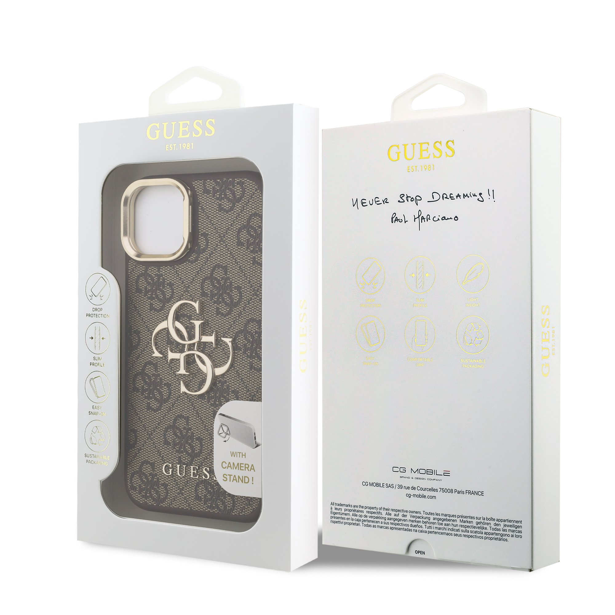 A prémium Guess PU 4G Fém Logó Állványos Kamera Keretes tok elegáns, jellegzetes 4G mintázattal rendelkezik, melyet a GUESS logó egészít ki.