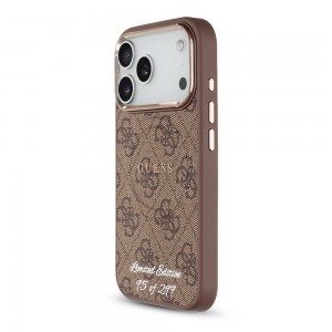The premium limited edition Guess PU 4G MagSafe Strap Limited Edition back cover features an elegant, signature 4G pattern, complete with the GUESS logo and beaded strap.