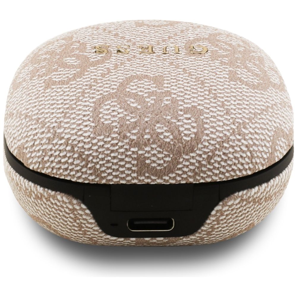 • Stílusos töltőtok: Az elegáns Guess logóval ellátott töltőtok nemcsak megvédi a fülhallgatókat, hanem teljesen feltöltve is tartja őket. A tok kompakt, így könnyen elfér a zsebben vagy a táskában.