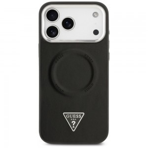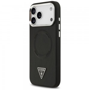 iPhone 17 Pro fekete Guess PU bőr háromszög logós MagSafe tok