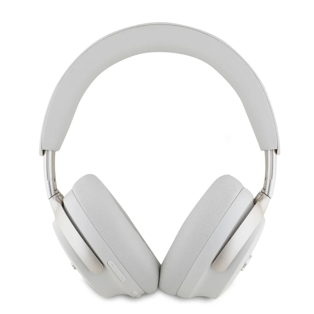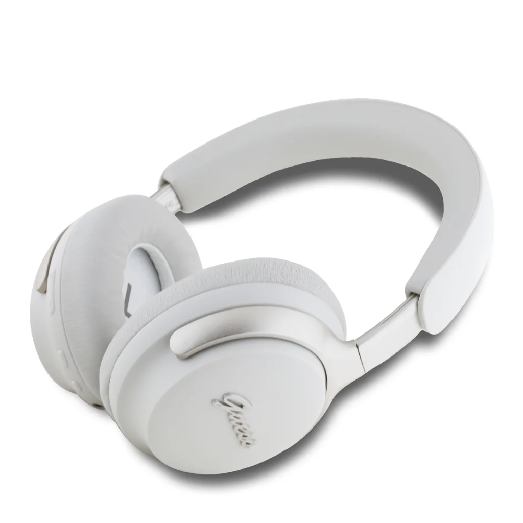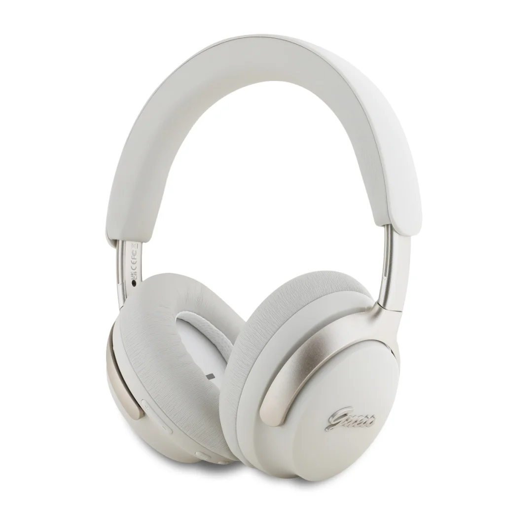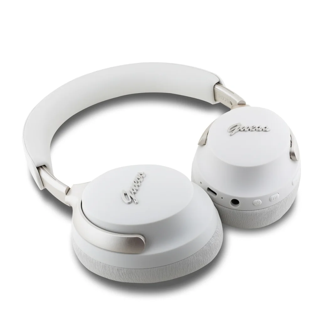 A Guess PU Bőr Script Logós ANC/ENC fejhallgatók kívül jellegzetes ezüst logóval rendelkeznek. A fejhallgatók robusztus és elegáns megjelenésűek, minimalista dizájnnal, amely mellőzi a felesleges díszítéseket. Az összkép modern és stílusos, mindennapi használatra alkalmas.