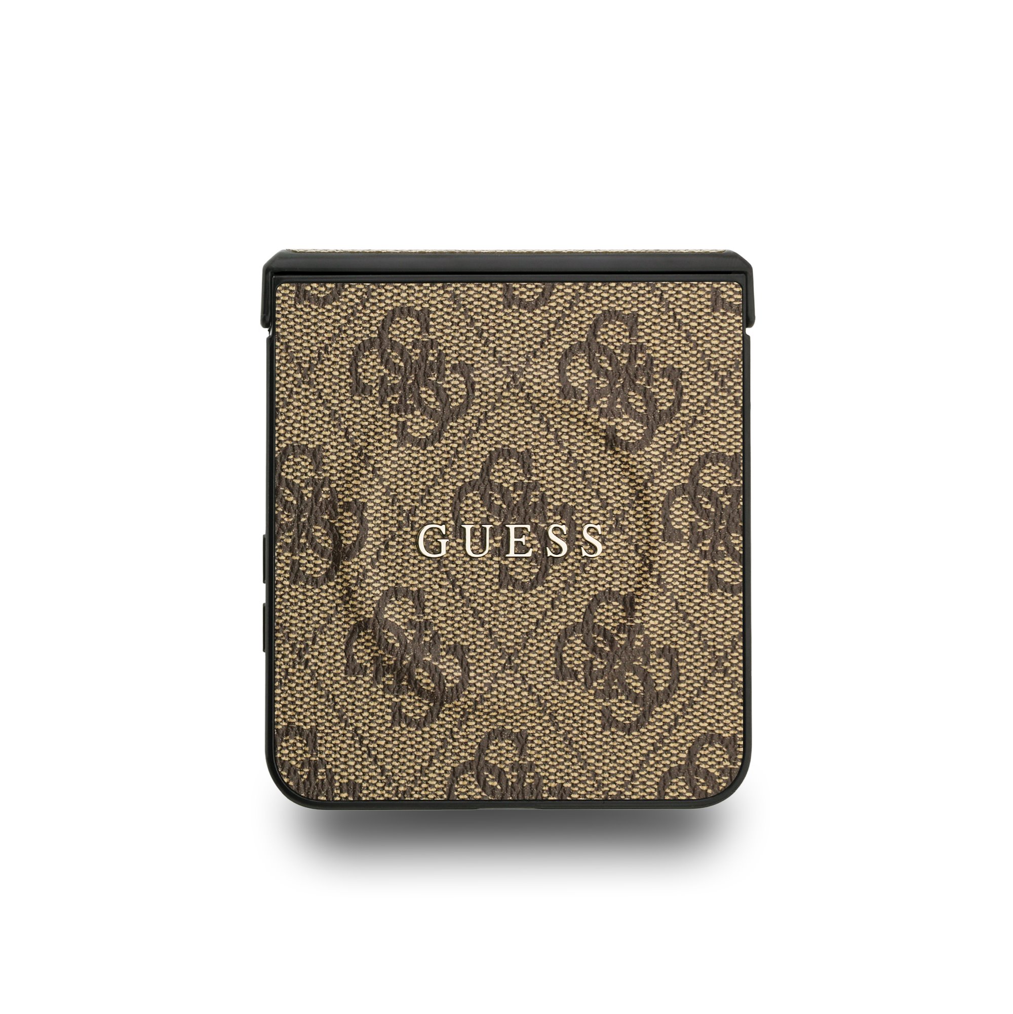 - Exkluzív 4G minta: A barna PU bőrből készült tokot a Guess jellegzetes, ismétlődő 4G logója díszíti, amely azonnal felismerhetővé teszi és luxus megjelenést kölcsönöz a készüléknek. A Guess felirat diszkréten, mégis markánsan jelenik meg, hangsúlyozva a márka hitelességét.
