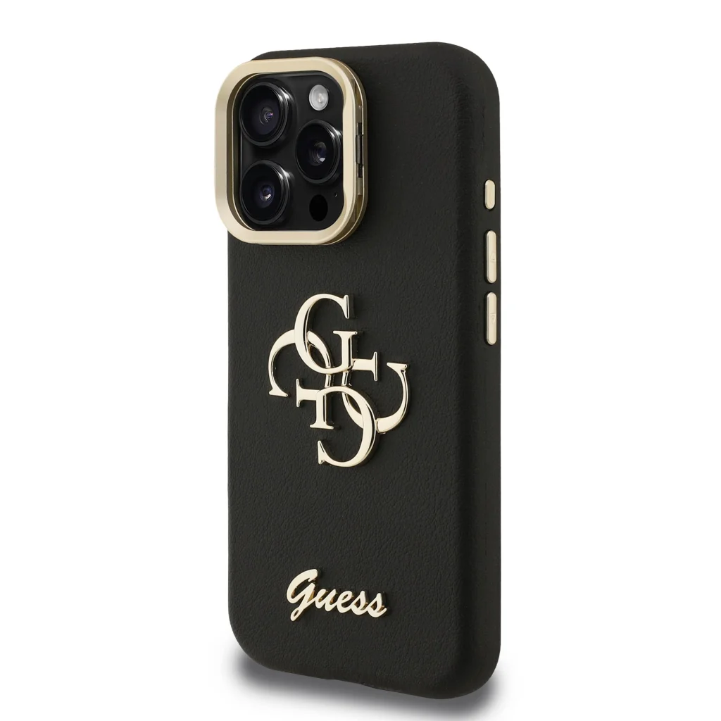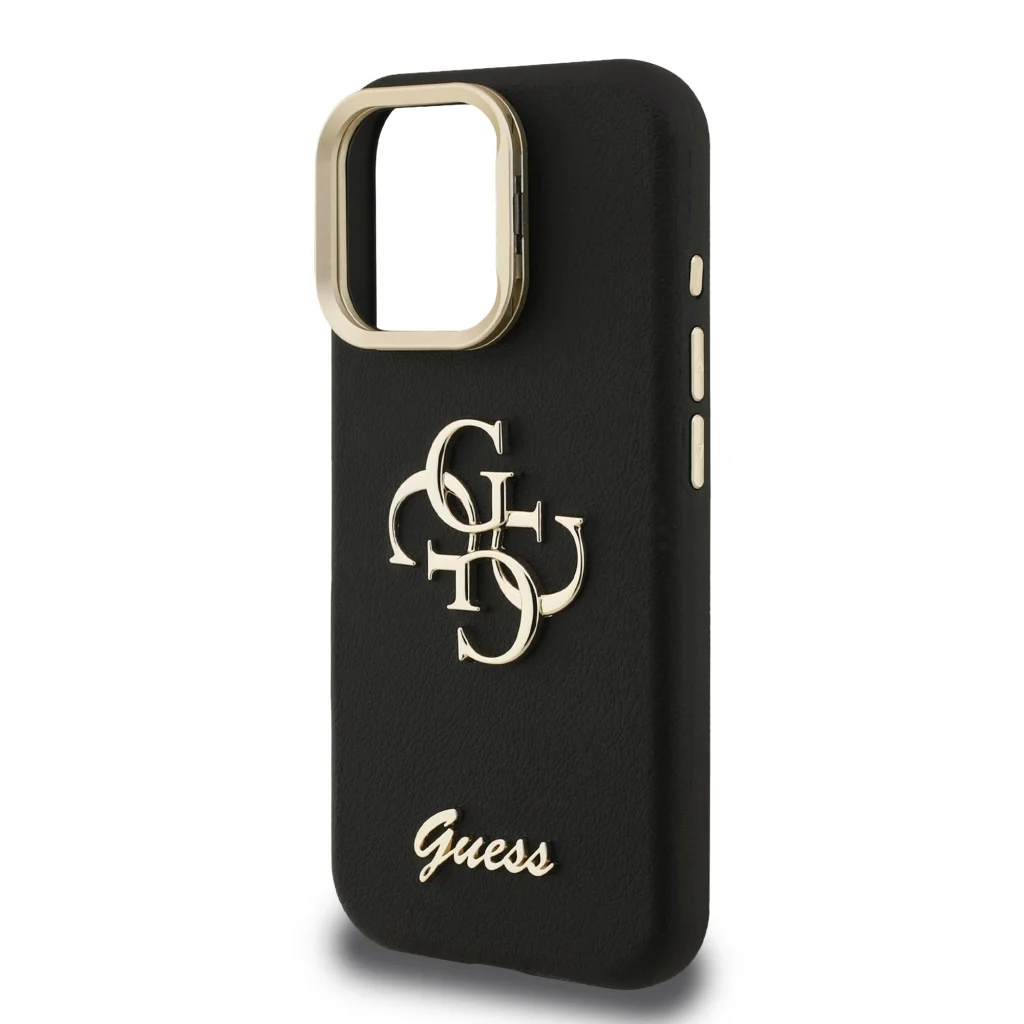 Guess PU Grained 4G Logo állványos kamera keretes tok iPhone 15 Pro Max - Fekete tok