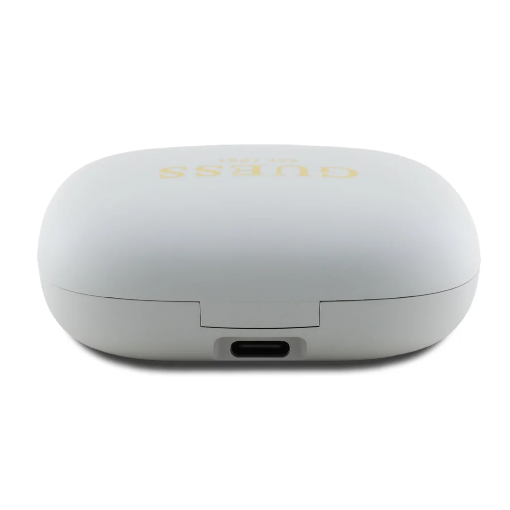 • Stílusos töltőtok: Az elegáns Guess logóval ellátott töltőtok nemcsak védi, hanem teljesen feltöltve is tartja a fülhallgatókat. A tok kompakt, könnyen elfér a zsebedben vagy a táskádban.