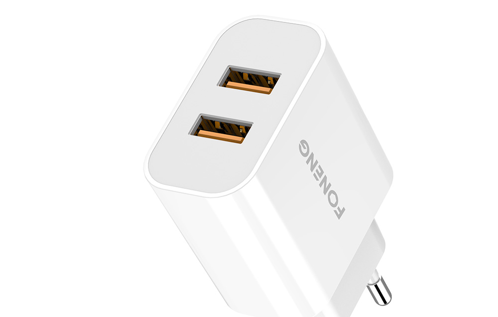 Takarítson meg időt és helyet azzal, hogy 2 készüléket tölt egyszerre a Foneng EU45 töltővel! A termék 2 USB portot kínál, összesen 12 watt teljesítménnyel. Széles körű kompatibilitással rendelkezik, és 100-240V bemeneti feszültséget elfogad, így különböző elektromos szabványokat használó aljzatokkal is jól működik. Kiváló minőségű anyagokból készült és intelligens chippel van felszerelve, így megvédi a készülékeket a túlmelegedéstől, túltöltéstől, rövidzárlattól stb. A csomag tartalmaz egy USB-ről Lightning-ra kábelt is.