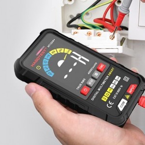 A Habotest HT124A+ digitális univerzális multiméter egy kézi eszköz, amely meglepi felhasználóit képességeinek széles skálájával. Nagy pontossággal méri az AC és DC feszültséget, ellenállást, folytonosságot vagy frekvenciát, többek között. Emellett Live Test funkcióval rendelkezik, lehetővé teszi a nem érintkező feszültségérzékelést (NCV) és még sok mást. Fontos megjegyezni, hogy a multiméter gyakorlati gombokkal rendelkezik, amelyekkel hatékonyan választható ki egy funkció.