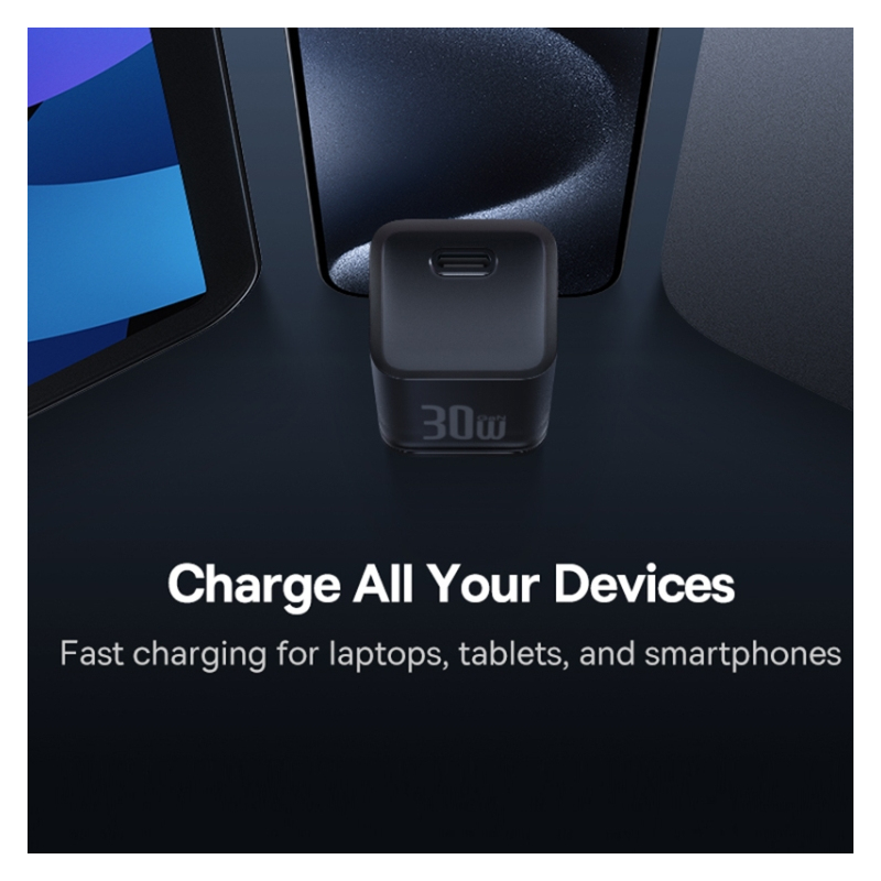 A Baseus GaN5S hálózati töltő egy kompakt és hordozható megoldás, amely tökéletes a mindennapi használatra vagy utazáshoz. Támogatja a különböző töltési protokollokat, így sokoldalúan használható különféle eszközök töltésére. Egy külön megvásárolható kompatibilis kábel segítségével széles skálájú mobil eszközök áramellátását biztosíthatja. A fejlett GaN technológia jobb integrációt, nagyobb hatékonyságot és magas biztonságot nyújt. A burkolat tűzálló PC anyaga további biztonsági réteget biztosít. Ez a kicsi, mégis erős töltő kiváló választás a gyors és hatékony eszköztöltésre. Specifikációk: - Anyag: ABS, Polikarbonát - Kimeneti teljesítmény: 30W - Bemenet: 240V - Típus-C kimenet: (5V/3A, 9V/2.22A) - Méretek: 30.2 x 30.2 x 51.5mm - Súly: 49g