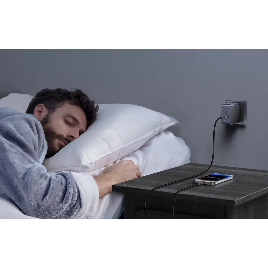 A te biztonságod és eszközeid épsége az Ugreen elsődleges prioritása. Az Ugreen Nexode Air töltő a legmodernebb beépített védelmi rendszerekkel van ellátva, melyek megbízhatóan óvják készülékeidet túlfeszültség, túlmelegedés, rövidzárlat és más potenciális veszélyek ellen. Így biztos lehetsz benne, hogy eszközeid teljes biztonságban vannak, akár éjszaka is töltheted őket, mint ahogy az egyik kép is szemlélteti. Emellett a töltő intelligensen állítja be a töltési teljesítményt a csatlakoztatott eszközök igényeinek megfelelően, biztosítva az optimális sebességet és elkerülve a károsodást.
