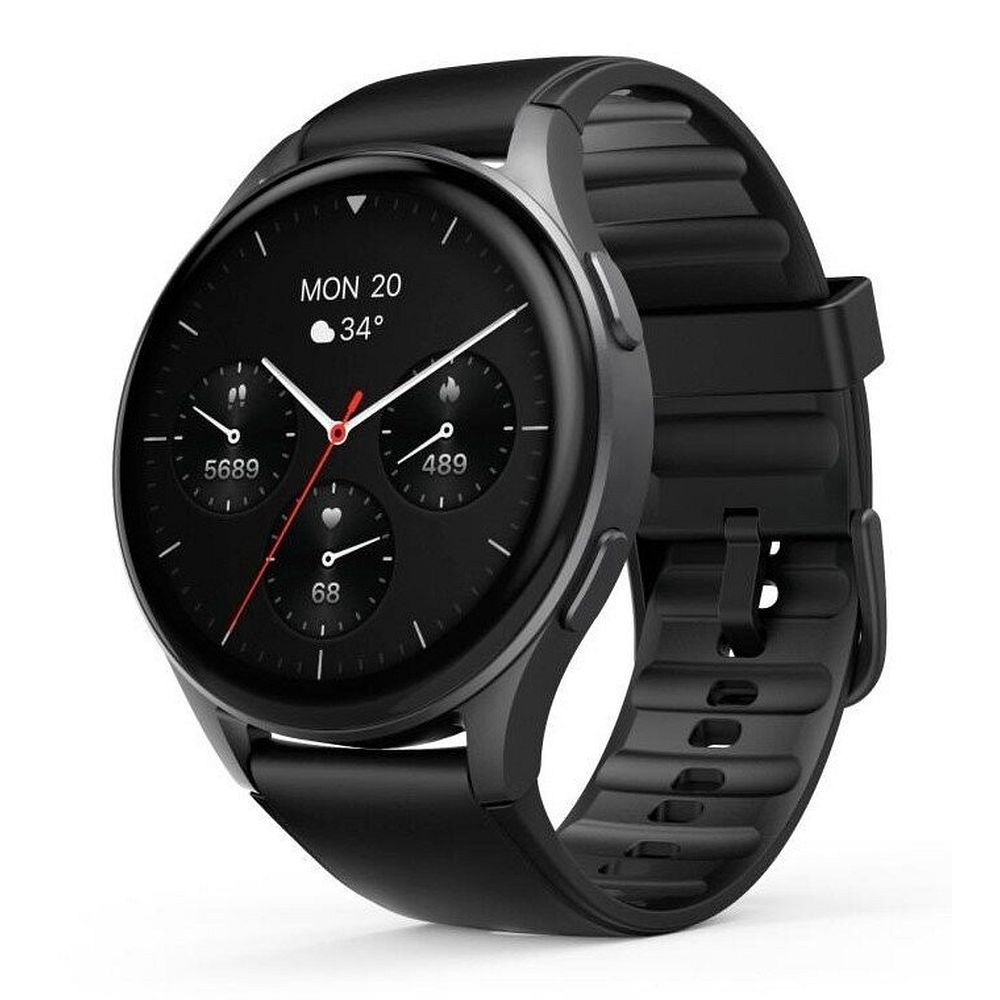 Specifikációk: Fekete tok, fekete szilikon szíj, Kijelző fényerő 450 Nits, Felbontás 466 x 466 Pixel, Bluetooth verzió 5.3. Fizikai tulajdonságok: További funkciók: Aktivitás érzékelése, Always-On-Display, Emlékeztetők, BEIDOU, BT-hívás, Légzőgyakorlatok, Kamera vezérlése, Óra, Dátum, Számlapok, Ne zavarjanak mód, Ivásra emlékeztető, Ujjlenyomat-érzékelő, Zseblámpa, GALILEO, GLONASS, GPS, Pulzusszám riasztás, Iránytű, Menstruációs ciklus, Mozgás emlékeztető, Zene vezérlése, Értesítések, Telefon keresés, Pomodoro időzítő, Energiatakarékos mód, Futás kurzusok, Állítható kijelző fényereje, Sportmódok, Stopper, Időzítő, Edzés protokoll, Időjárás Kijelző, Világóra. Mérési funkciók: Aerob edzés hatása, Környezeti zajok (zajszint), Átlagos pulzusszám, Barometrikus magasságmérő, Vér oxigénszint, Test energia, Kalóriaégetés, Távolság, Pulzus, Nyugalmi pulzus, Pulzusszám kategória, Pulzusszám változékonyság (HRV), Max. oxigén felvétel (VO2max), Lépésszámláló, Ajánlott regenerációs idő, SWOLF, Alvás pontszám és szakaszok, Sebesség, Stressz, Tempó, Edzésidő. Szíj anyaga: Szilikon, Tok anyaga: Alumíniumötvözet, Típus: Smartwatch, IP védelem: IP68, Kijelző típusa: AMOLED, Zár típusa: Tüske csat, Hang asszisztens: Amazon Alexa, Tulajdonságok: Vízálló. Kijelző sűrűsége: 326 ppi, Méretek és súly: Szélesség x Magasság x Hosszúság 4,6 x 1,2 x 5,3 cm, Szíj maximális hossza 22 cm, Szíj minimális hossza 14,5 cm, Szíj szélessége 2 cm, Súly 43,5 g. Kijelző mérete: 3,63 cm (1,43"). Tápellátás: Átlagos akkumulátor élettartam kb. 6 - 8 nap, Töltési mód: Csatlakozás, Akkumulátor neve: Lítium-polimer akkumulátor, Akkumulátor kapacitása 300 mAh. Nagy érintőképernyős AMOLED kijelző, amely lehetővé teszi az egyszerű kezelést és a funkciók gyors áttekintését. Elegáns alumínium tok, amely szilárd és elegáns megjelenést biztosít. Pontos GPS útvonalrögzítés okostelefon nélkül, barometrikus magasságmérő a túrákhoz és sportokhoz. Telefon funkció: hívások fogadása és kezdeményezése a karórán keresztül. Alexa integrált hangvezérlő asszisztens. Értesítések és üzenetek megjelenítése, vibrációval és kijelzőn történő értesítéssel. Vízállóság IP68 védelemmel, amely lehetővé teszi a különböző vízi tevékenységeket. Sokféle sportmód közül választható, ideértve a VO2max és stressz szint mérését. Zene vezérlése közvetlenül az okosóráról. Az „Hama FIT Move” alkalmazás Németországban tesztelve. Automatikus aktivitás érzékelés. Akár 8 napos üzemidő egy töltéssel, energiatakarékos mód esetén akár 25 napig is használható, teljes töltés 2,5 óra alatt.