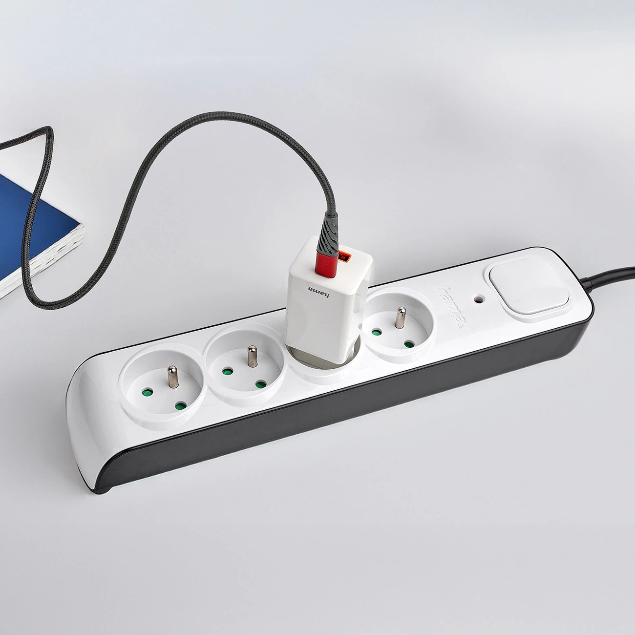 - Kompakt kialakítás: Elegáns, lapos dugó, amely ideális nehezen elérhető helyekre, például bútorok mögé.