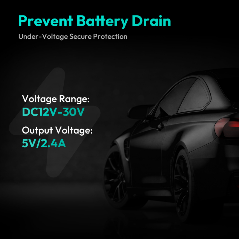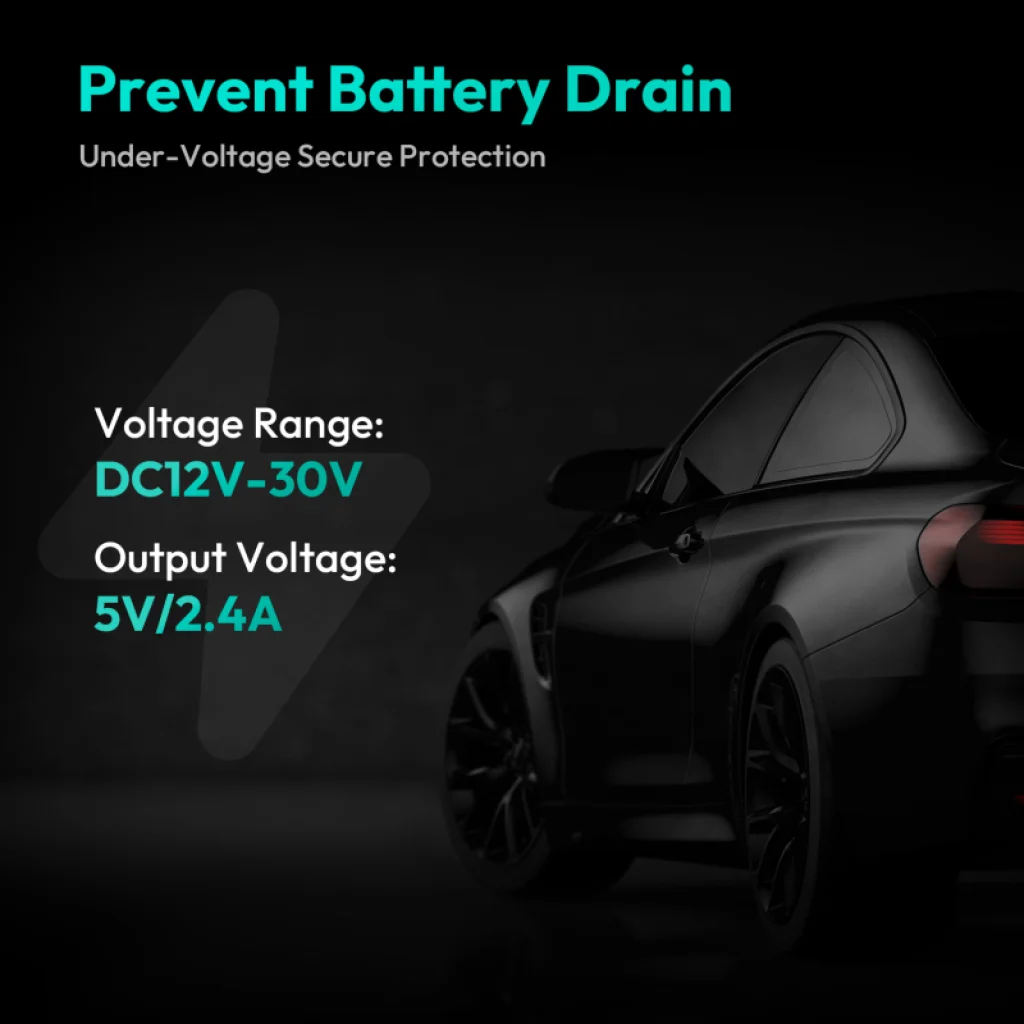 - Under-Voltage Secure Protection-nel felszerelve, a hardwire kit biztosítja, hogy járműve akkumulátora védve legyen a lemerüléstől, és levágja az áramellátást az autós kameráról, amikor a feszültség túl alacsony.