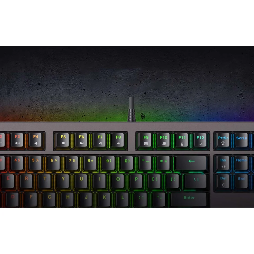 A Havit KB872 RGB mechanikus gamer billentyűzet a tökéletes társ, hogy urald a virtuális csatatereket. Tervezésénél a sebesség, pontosság és stílus állt a középpontban, így minden egyes leütés élményt nyújt, miközben ellenfeleidet magad mögött hagyod. Az angol kiosztású, teljes méretű billentyűzet (104 gomb) mindent megad, amire szükséged van a győzelemhez.