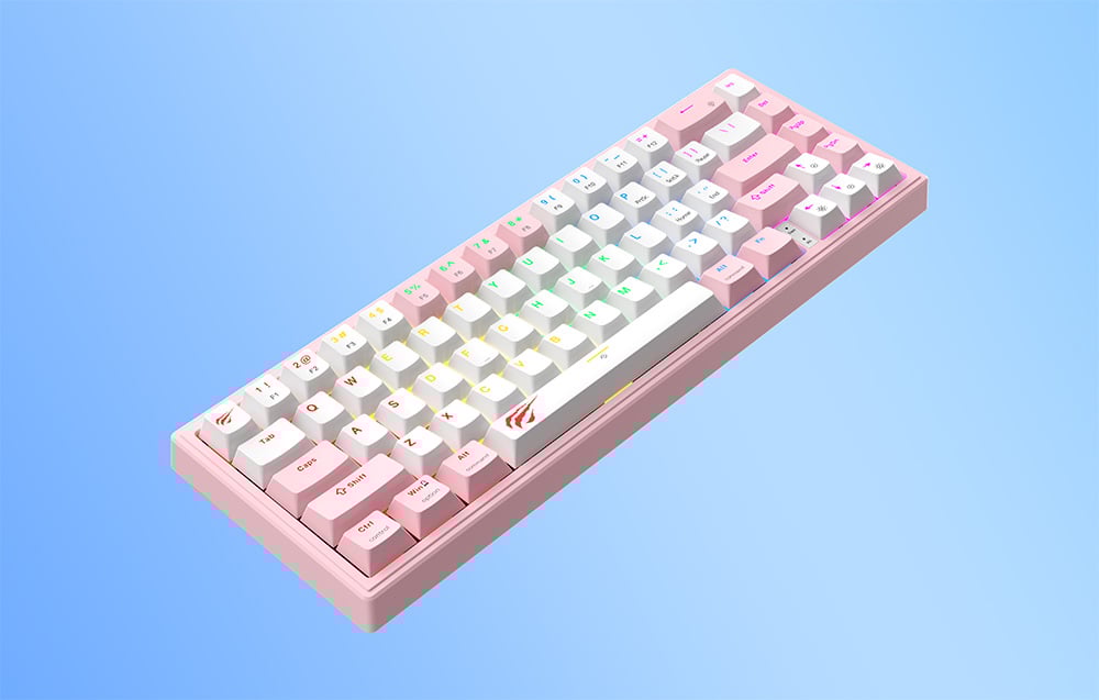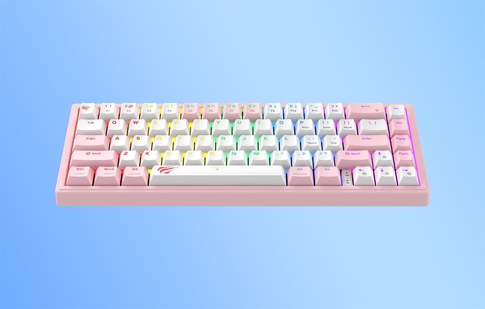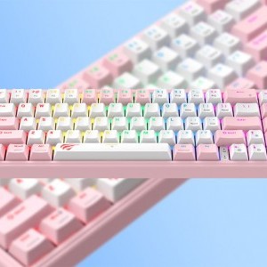 A Havit KB874L egy stílusos mechanikus billentyűzet, amely egyesíti a teljesítményt, az esztétikát és a funkcionalitást. Rózsaszín és fehér színösszeállításának és RGB háttérvilágításának köszönhetően bármely játékállványon kitűnhet. A billentyűzet kompakt mérete és ergonomikus kialakítása ideális választás mind a játékosok, mind pedig az elegáns munkaeszközt keresők számára.